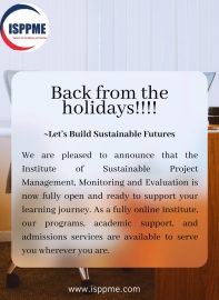 The Institute of Sustainable Project Planning, Monitoring, and Evaluation is a registered online and part-time institute with an objective to promote excellence and sustainability in professional project management, training, monitoring, and evaluation. It is registered under the Ministry of Higher...