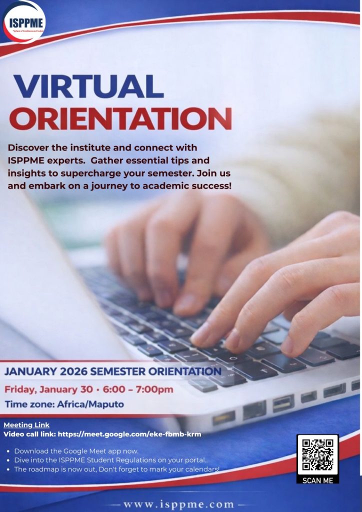 Join us for our Virtual Orientation Session as we officially begin the new semester. This session will introduce you to academic expectations, learning platforms, support services, and key semester guidelines to help you start confidently.
